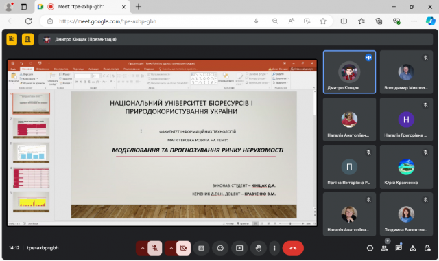 Ремінна Поліна («Оцінка економічних втрат аграрного сектору України внаслідок війни», науковий керівник – к.е.н., доцент Клименко Н.А.), говорила про важливість оцінки втрат, які приносить країні війна й про необхідність їх прогнозування з метою зменшення ризиків. Кравченко Юрій («Цифровізація та диверсифікація українського агробізнесу», науковий керівник – к.е.н., доцент Клименко Н.А.) представив цікаві розрахунки, які ілюструють нові підходи до ефективного розвитку вітчизняного агробізнесу – через цифровізацію та диверсифікацію його процесів. Корнєв Віталій («Моделювання та прогнозування ринку трудових ресурсів» – науковий керівник – д.е.н., доцент Кравченко В.М. ) говорив про актуальність теми , особливо на сучасному етапі та, на основі своїх прогнозів, пропонував напрями підвищення ефективності цього ринку. Кінщак Дмитро представив своє дослідження ринку нерухомості (науковий керівник: д.е.н., доцент Кравченко В.М.). Робота присвячена моделюванню та прогнозуванню ринку нерухомості і зосереджена на аналізі сучасних тенденцій на ринку нерухомості та розробці моделей для
