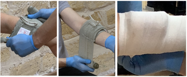 - іммобілізувати травмовану кінцівку за допомогою шини. Шина використовується для запобігання руху та утримання пораненої кінцівки в одному положенні. Використовуйте гнучку шину SAM.