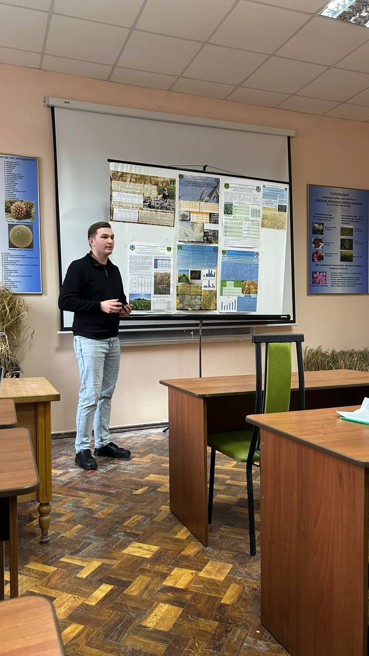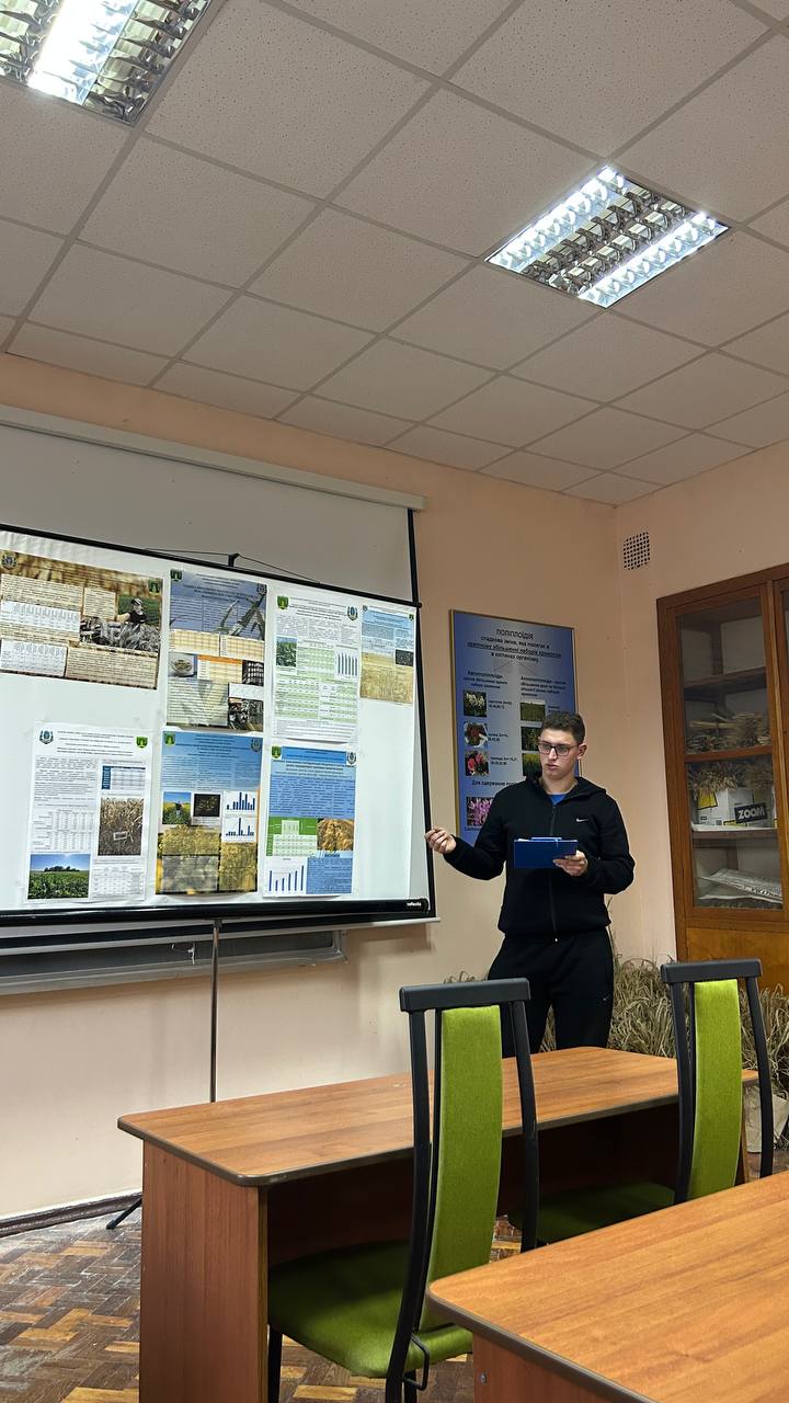 Назар Польовик – «Виробниче випробування гібридів кукурудзи в умовах ТОВ “Фастів Агро”». Представив результати польових виробничих випробувань та порівняльну характеристику гібридів за продуктивністю.