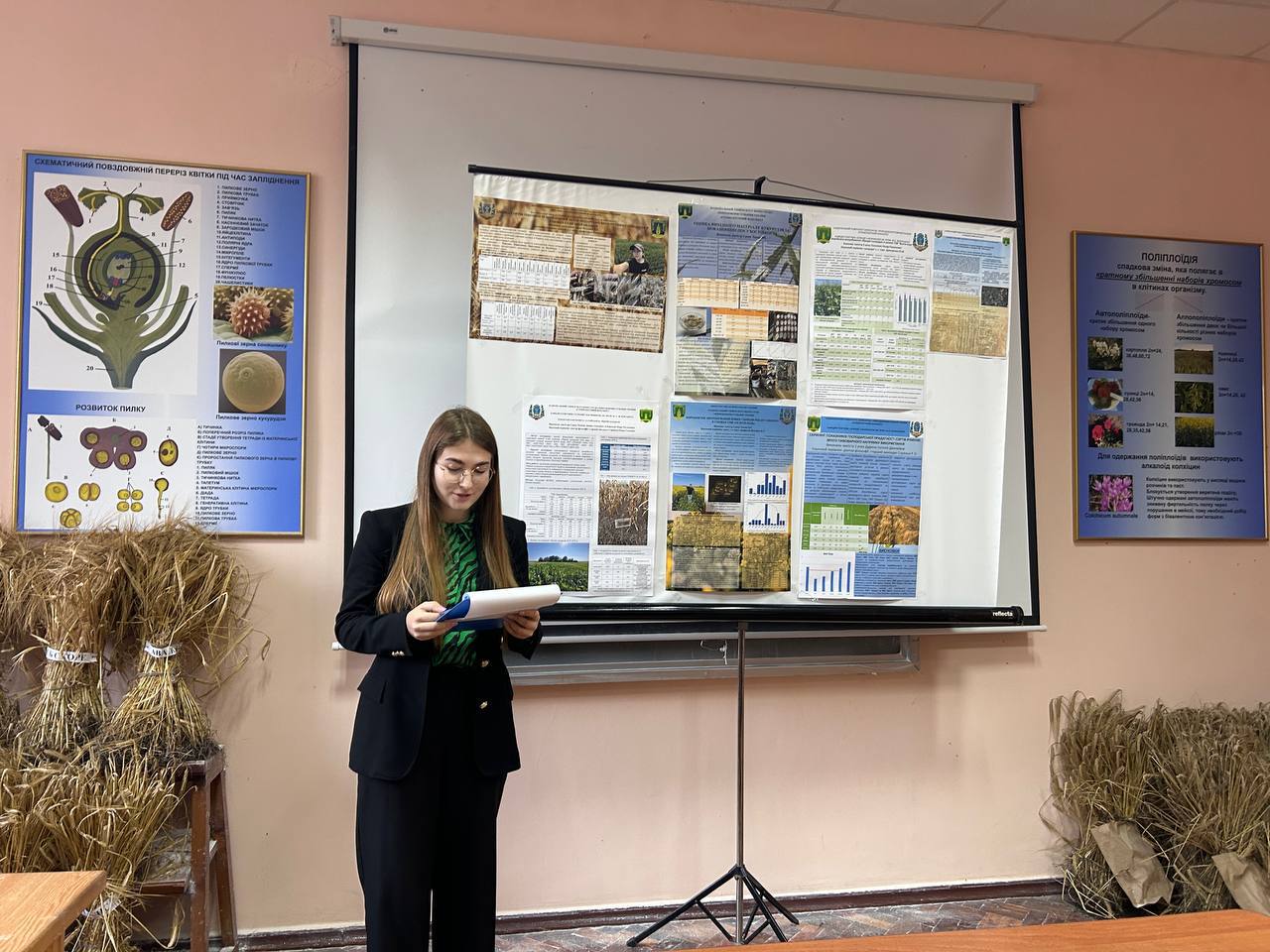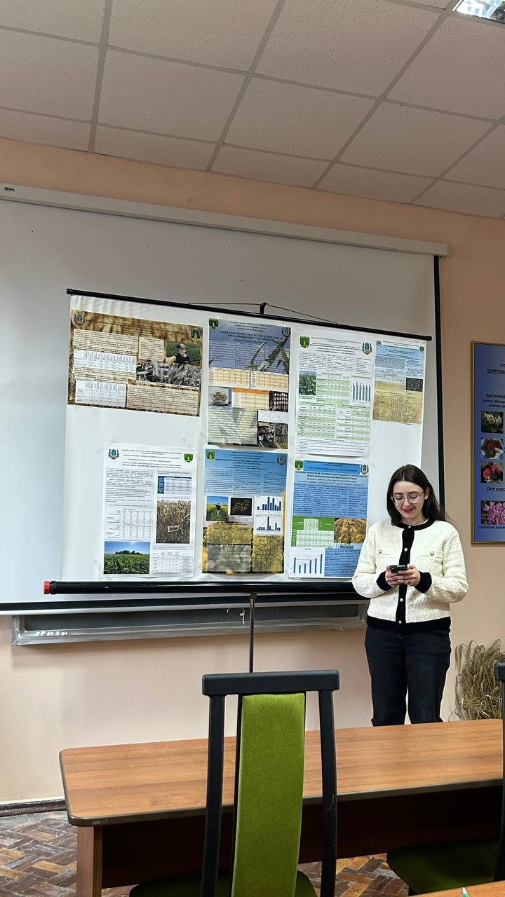 Анастасія Ветушка – «Оцінка сортів пшениці м’якої озимої за господарсько-біологічними ознаками в умовах Сумської області». У доповіді охарактеризувала продуктивність, біометричні показники та адаптивні властивості сортів, визначивши найбільш перспективні для регіону.