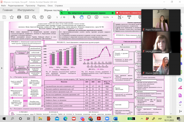 10.11.2022 року на кафедрі економіки економічного факультету НУБіП України відбулася постерна презентація магістерських робіт студентів спеціальності 051 Економіка освітньо-професійної програми «Економіка підприємства».