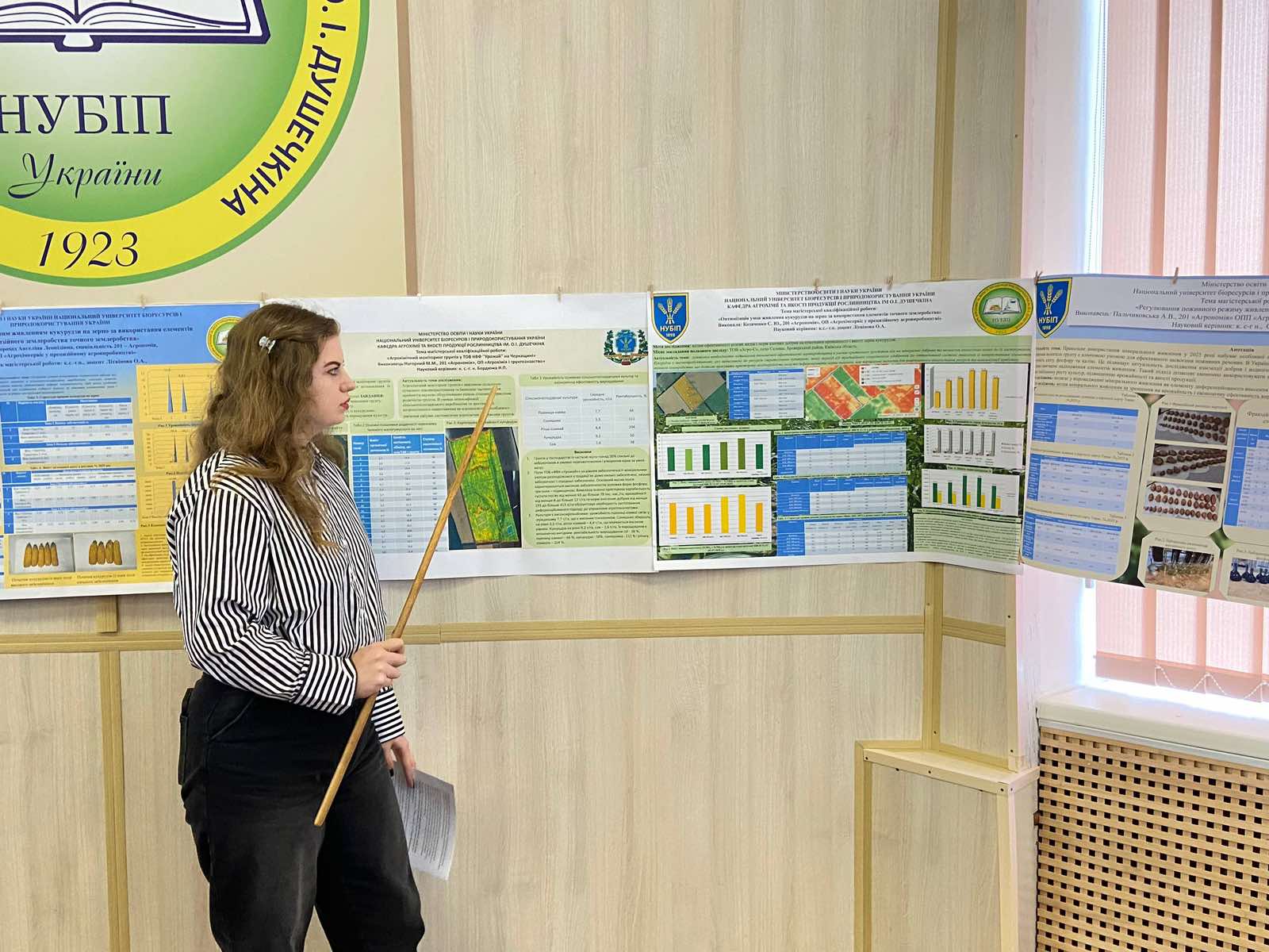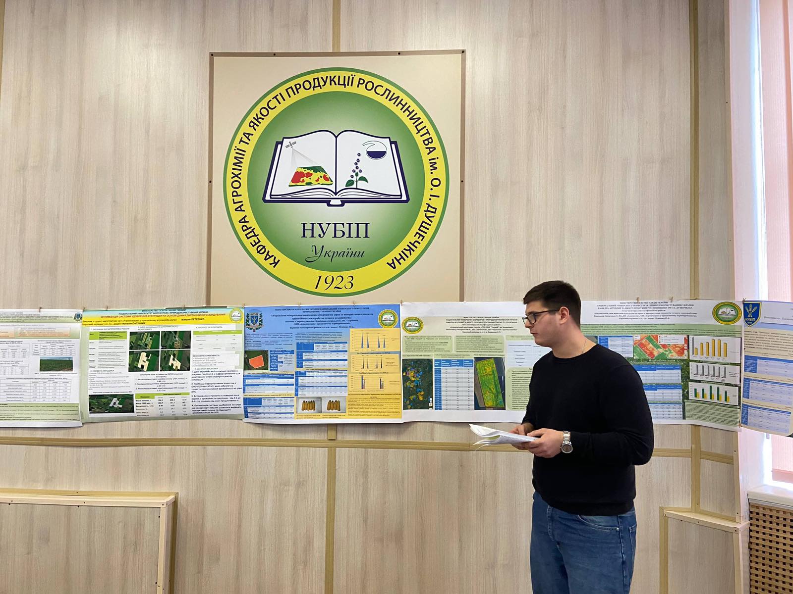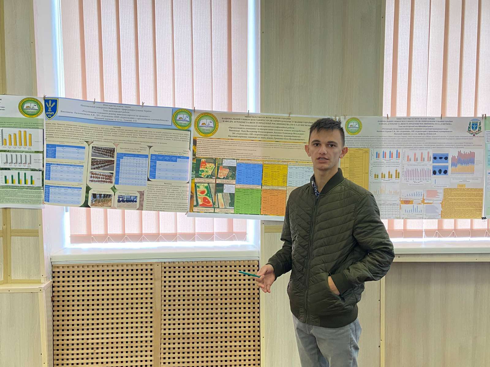 Сьогодні свої матеріали на портерній конференції в очному форматі представили магістри кафедри агрохімії та якості продукції рослинництва ім. О.І. Душечкіна. Вступне слово з побажаннями успішного проходження заходу висловив завідувач кафедри Дмитро Літвінов. Кожна доповідь є унікальною і заслуговує на увагу аудиторії, адже актуальність роботи не викликає сумніву. На заході були представлені матеріали дистанційного моніторингу сільськогосподарських культур, інноваційні підходи до діагностики живлення рослин, використання фертигації в різних зонах поля, диференційованого внесення добрив та вапнякових матеріалів в умовах точного землеробства. Не оминули доповідачі і питання дослідження нових видів, форм і способів внесення спеціальних агрохімічних продуктів в сучасному агровиробництві, вся вищезазначена інформація для публічного доступу розміщення викладена у наукових тезах на сторінці кафедри за посиланням (https://nubip.edu.ua/posterna-konferentsiya-mahistriv)