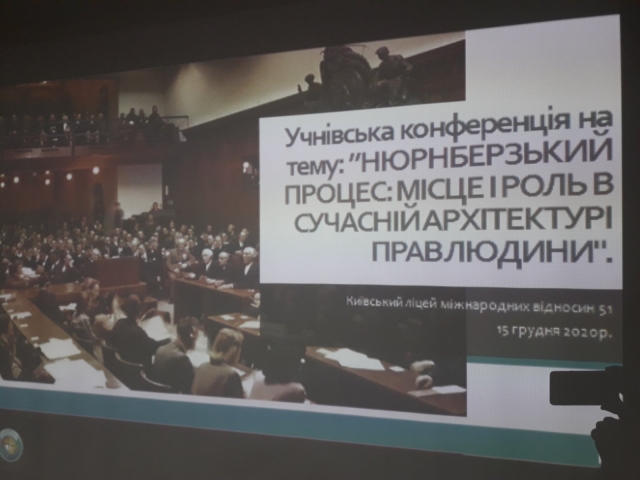 15 грудня 2020 року у Київському ліцеї міжнародних відносин N 51 традиційно відбувся науковий захід. Цьогоріч це конференція з предмету "Основи правознавства" на тему: "Нюрнберзький процес: місце і роль в сучасній архітектурі прав людини". До участі в конференції долучилися учні 9-х,10-х,11-х класів, а старший викладач кафедри Карім Ємельяненко виступив як суддя-експерт.
