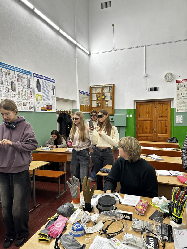 Особливу увагу викладачі приділили демонстрації сучасних засобів індивідуального захисту компанії UVEX, серед яких – захисні окуляри, рукавиці, каски та спецвзуття.