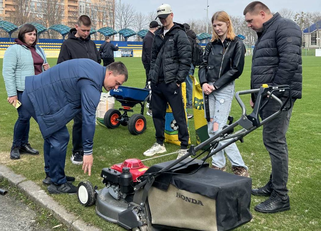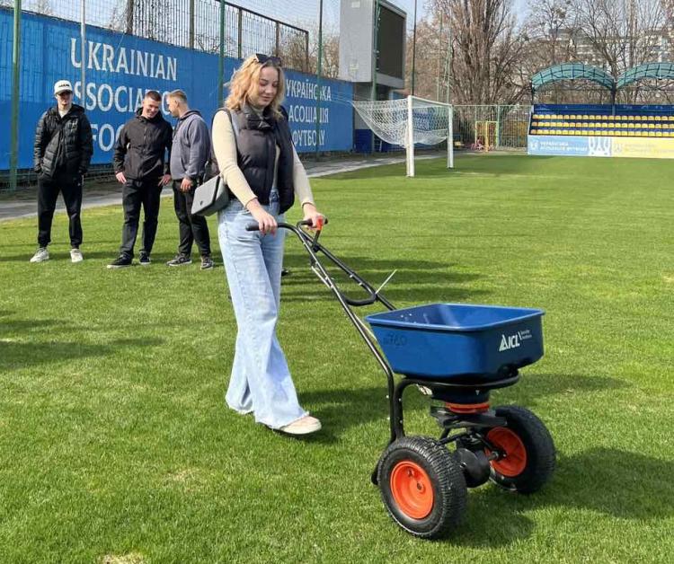 Під керівництвом завідувача спортивних споруд НТК ім. В. Банікова УАФ студенти мали змогу провести підсів газонних травостоїв, ознайомитися з налаштуванням норми висіву та спланувати подальші заходи догляду за газоним покриттям.
