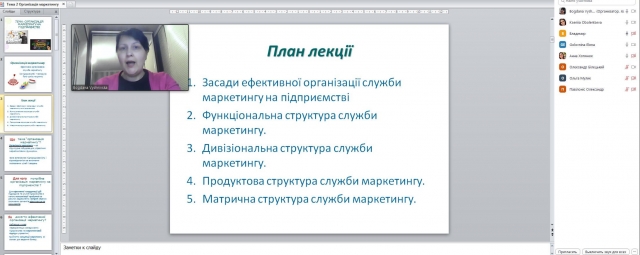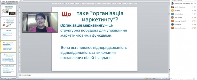 22 лютого 2023 року, відповідно до затвердженого графіку проведення відкритих лекцій згідно наказу ректора НУБіП України від 24.01.2023 р., доцент кафедри маркетингу та міжнародної торгівлі Богдана Вікторівна Вишнівська провела відкриту лекцію з дисципліни «Маркетинговий менеджмент» на тему «Організація маркетингу на підприємстві» для студентів ОС «Магістр» спеціальності 075 «Маркетинг»