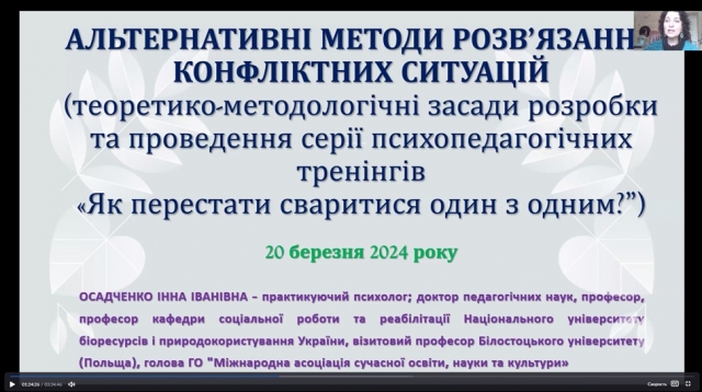 Професора Осадченко І. І. запросили до вітального слова як щорічну гостю цього дійства та з презентацією-перекладом польсько-української співпраці із доктором Анною Млинарчук-Соколовською із Білостоцького університету (Польща) у сфері психопедагогічної підтримки сімей українських біженців, зокрема дітей, які нині перебувають закордоном.