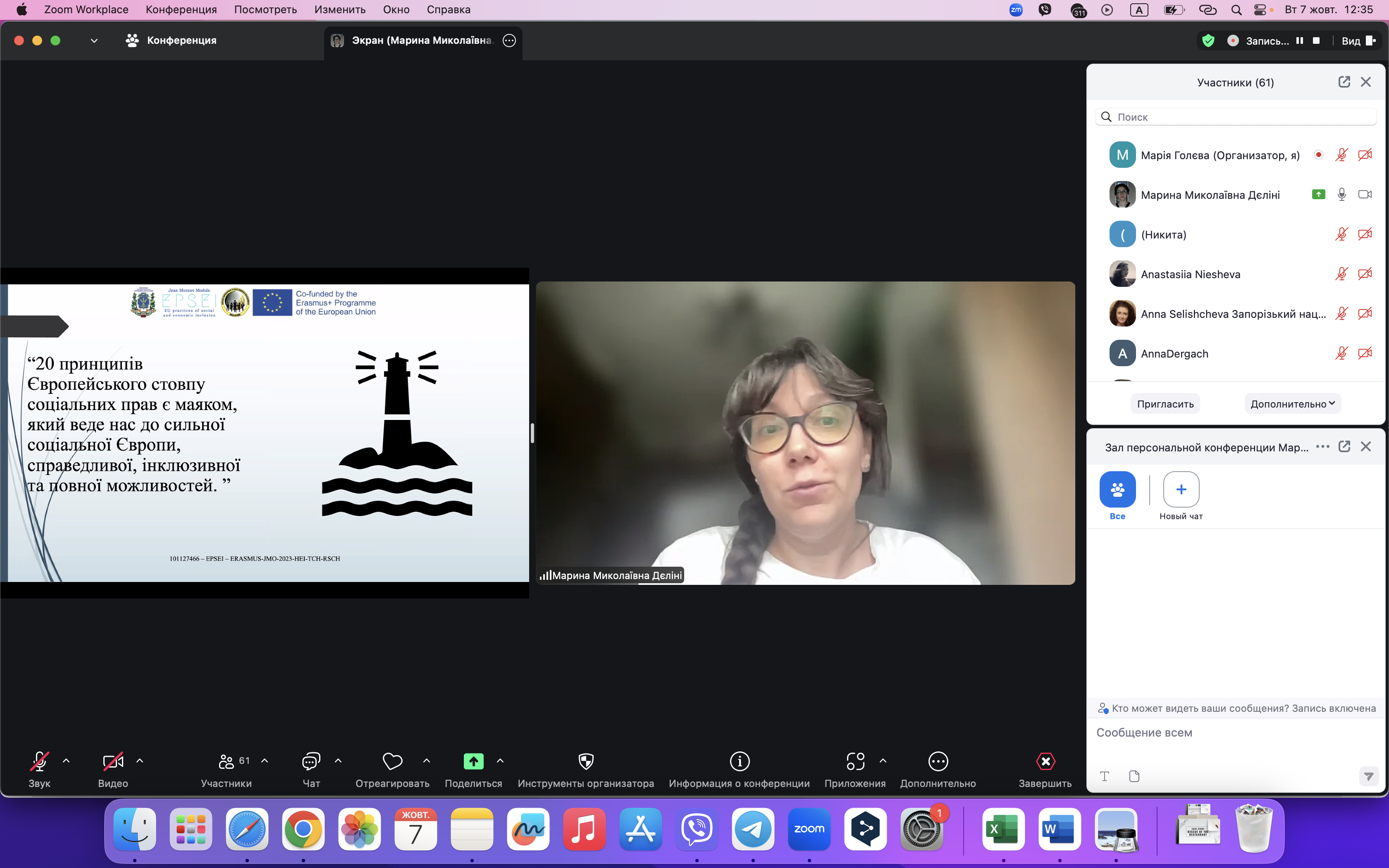 У ході онлайн-заняття учасники ознайомилися з основними підходами, механізмами та кращими практиками ЄС, спрямованими на забезпечення інклюзивного економічного зростання, соціальної справедливості та залучення всіх верств населення до процесів розвитку. Особливий акцент зроблено на усвідомленні взаємозв’язку між інклюзивністю, різноманітністю та сталим розвитком, а також на оволодінні інструментами, що дозволяють інтегрувати ці принципи в управлінську й освітню діяльність.