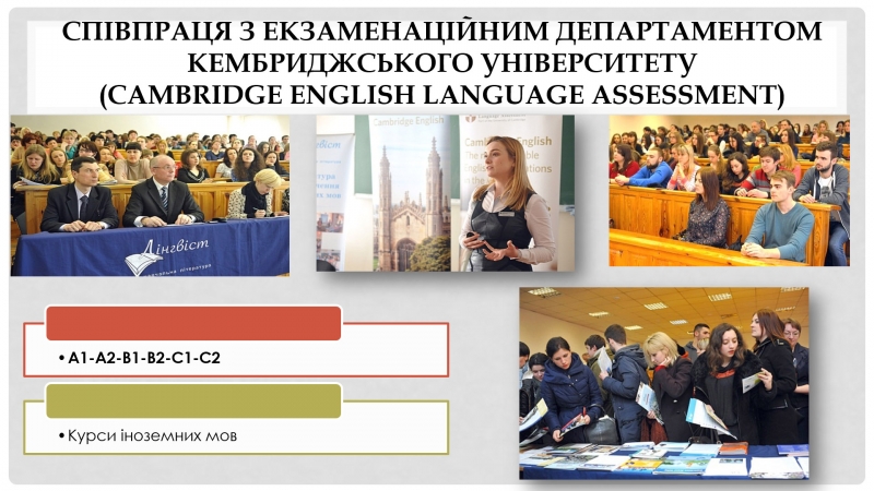 Третє, організовано спільно із Центром Кембриджського університету курси з вивчення англійської мови.