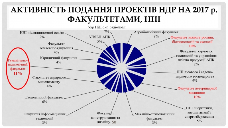 від п’ятдесяти до дев’яноста відсотків забезпечені 4 (чотири) кафедри (англійської мови для технічних та агробіологічних спеціальностей, кафедра іноземної філології і перекладу, кафедра культурології та фізичного виховання).