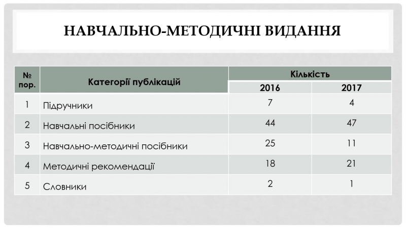 Підготовлено і видано понад 200 підручників, 300 навчальних посібників, навчально-методичних посібників, понад 300 методичних рекомендацій, словників тощо.