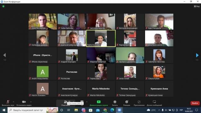 16 серпня 2022 р. на економічному факультеті було проведено онлайн-зустріч деканату економічного факультету зі старостами академічних груп 2-4 курсів та магістрів 2 року навчання. Також учасниками зустрічі були куратори академічних груп.      Метою зустрічі було обговорення початку нового навчального року в умовах воєнного стану, виклики, які є на даний час у студентів, поселення у гуртожиток, проходження виробничої практики для студентів 4 курсу та 2 курсу скороченого терміну ОС «Бакалавр» навчання та 2 року навчання ОС «Магістр», стан здоров’я в академічних групах, можливості відновлення очного навчання в перспективі тощо.