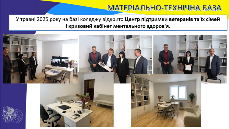 Найбільш потрібним для розвитку коледжу є зміцнення матеріально-технічної бази, модернізація лабораторій, покращення різними засобами освітнього процесу. І тут адміністрація коледжу докладає максимум зусиль та вкладає кошти в ремонти авдиторій, купівлю необхідних технічних засобів для покращення освітнього процесу, утеплення приміщень, створення комфортних умов в укриттях та навчальних корпусах, проведено ремонт у спортивному залі та закуплено спортивний інвентар, створено освітній хаб банківських і фінансових операцій та кабінет дендрології, у травні на базі коледжу відкрито Центр підтримки ветеранів та їх сімей і кризовий кабінет ментального здоров'я.