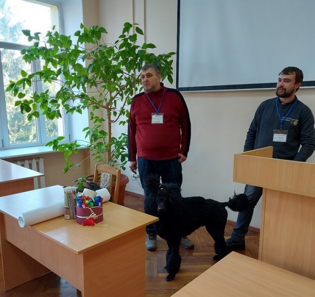 Василь і Сергій поділилися із присутніми практичним досвідом, розказали про особливості волонтерської допомоги, яку вони здійснюють на Залізничному вокзалі м. Львова - від фізичної допомоги людям із евакуаційних потягів чи автобусів до медичної та психологічної. Розказали також про роль Олівера у каністерапії людей, які проживають травматичні та посттравматичні синдроми війни.