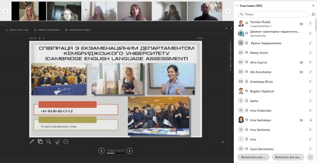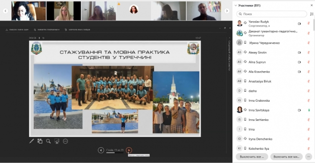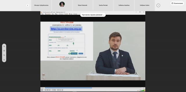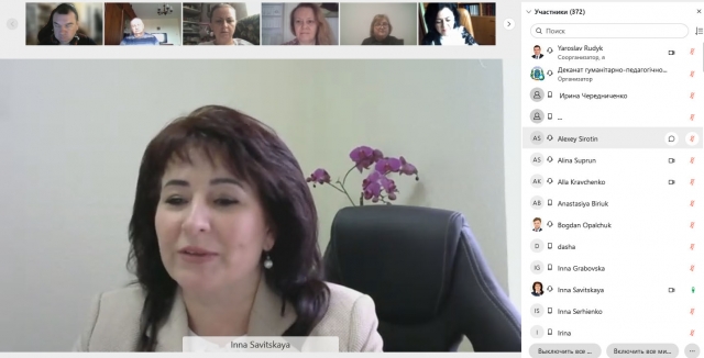 Розпочала зустріч декан гуманітарно-педагогічного факультету Інна Савицька і запропонувала уявити, що наше спілкування проходить офлайн, наживо, і закликала дарувати один одному щирі усмішки приєднуючись з увімкненими камерами та вмикати мікрофон або писати в чаті, щоб поставити запитання, уточнити інформацію. Наша стратегічна мета, зазначила декан факультету, незмінна: забезпечити підготовку висококваліфікованих, конкурентоспроможних спеціалістів фізично і морально здорових патріотів України, здатних ефективно працювати в нинішніх непростих умовах.