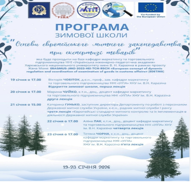 Так, проведення Зимової школи «Основи європейського митного законодавства при експертизі товарів» є надзвичайно актуальним у сучасних умовах інтеграції України в європейський економічний простір. Зростаюча роль міжнародної торгівлі та необхідність дотримання стандартів ЄС визначають потребу у фахівцях, які володіють актуальними знаннями сфері митного законодавства та експертизи товарів.