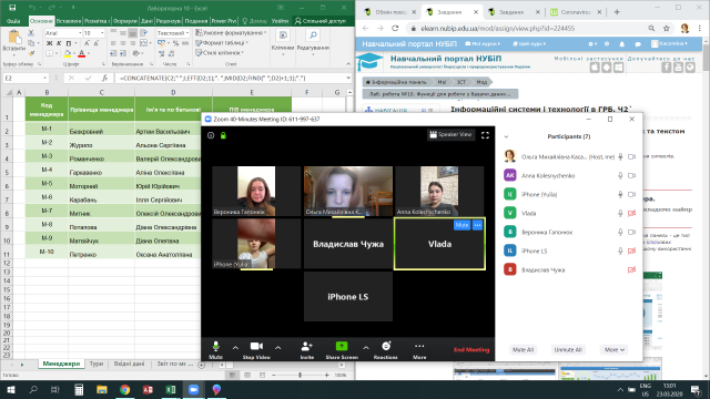 Так сьогодні старший викладач кафедри Ольга Касаткіна разом зі студентами першого курсу спеціальності "Готельно-ресторанна справа" провели лабораторні роботи з дисципліни "Інформаційні системи та технології" за розкладом, але дистанційно у вигляді відеоконференції за допомогою програми Zoom.