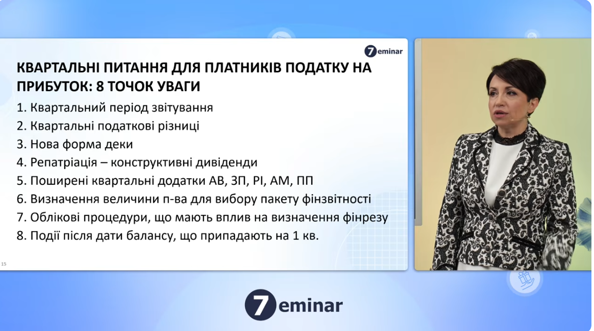 Програма семінару була насиченою і охопила широкий спектр питань, що безпосередньо впливають на діяльність підприємств і роботу фахівців обліково-фінансової сфери. Особливу увагу було приділено податковим змінам для юридичних осіб, зокрема питанням податку на прибуток, новим формам звітності, проблематиці непідтвердженої первинної документації та типових помилок після звітування.