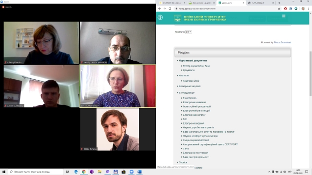 Не зважаючи на чинний карантин продовжується робота з акредитації освітніх програм у різних ЗВО. В період 8-10 квітня 2020 року в Київському університеті імені Бориса Грінченка із використанням технічних засобів відеозв’язку проведено акредитаційну експертизу освітньої програми «Безпека інформаційних і комунікаційних систем» спеціальності 125 Кібербезпека. Експертна група в складі: Лобанчикова Надія Миколаївна (керівник експертної групи, Державний університет «Житомирська політехніка»), Лахно Валерій Анатолійович (член експертної групи, Національний університет біоресурсів та природокористування України), Куліковський Антон Володимирович (член експертної групи, Національний авіаційний університет) провела зустрічі з керівництвом Університету, гарантом ОП, завідувачем кафедри, академічним персоналом, студентами та роботодавцями.