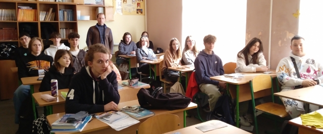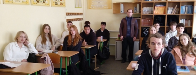 До візиту викладача про наш вуз вже знали багато учнів класу, проте учні з цікавістю слухали інформацію про НУБіП України, його факультети (інститути), зокрема спеціальності економічного факультету й відповідні професійні можливості майбутньої роботи в різних організаціях, умови навчання та гарантії отримання якісної вищої освіти, практики та паралельне навчання за кордоном, спортивні й культурні секції, військову кафедру тощо. Після промови доцента університету в учнів були декілька питань, зокрема про особливості умов прийому в цьому році, конкурсні бали на бюджетні місця для здобуття вищої освіти, вартість навчання за контрактом тощо. На всі питання доцент Євгеній ЛАНЧЕНКО надав відповіді, пояснення й поради, оскільки має великий досвід у приймальних кампаніях університету від економічного факультету.