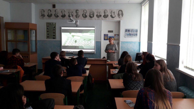 Наталія Василівна Мединська ознайомила учнів з інформацією щодо наявних спеціальностей та спеціалізацій, за якими університет проводить навчання студентів, з перевагами навчання у НУБіП України, термінами вступної кампанії, переліком необхідних сертифікатів ЗНО. Також представники університету акцентували увагу на навчанні з потенційним наступним працевлаштуванням за обраним фахом. Крім того, розповіли про культурно-масові й освітні заходи, до яких залучаються студенти під час навчання в НУБіП України.