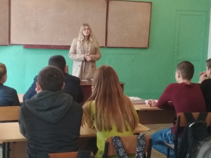 Під час профорієнтаційної роботи Гурина Марина проінформувала учнів щодо змісту професії «Психолог», переваги навчання на гуманітарно-педагогічному факультеті та перспективи подальшого працевлаштування за спеціальністю.