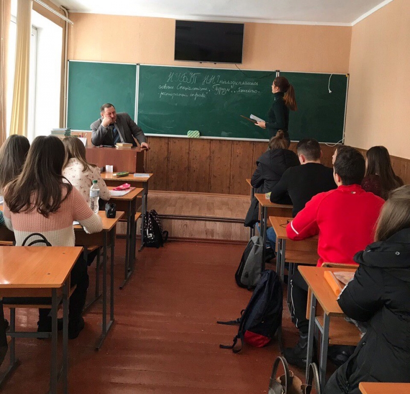 Ірина Дранко студентка 1 групи 1 курсу спеціальності «Туризм» під керівництвом куратора Ірини Кудінової, відвідала НВК «Звенигородська спеціалізована школа І-ІІІ ступенів №1 Звенигородської районної ради Черкаської області» у м. Звенигородка, Черкаської області, з метою проведення профорієнтаційної роботи з учнями навчально-виховного комплексу.