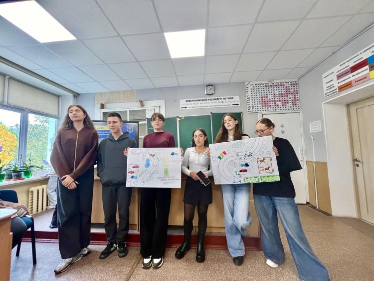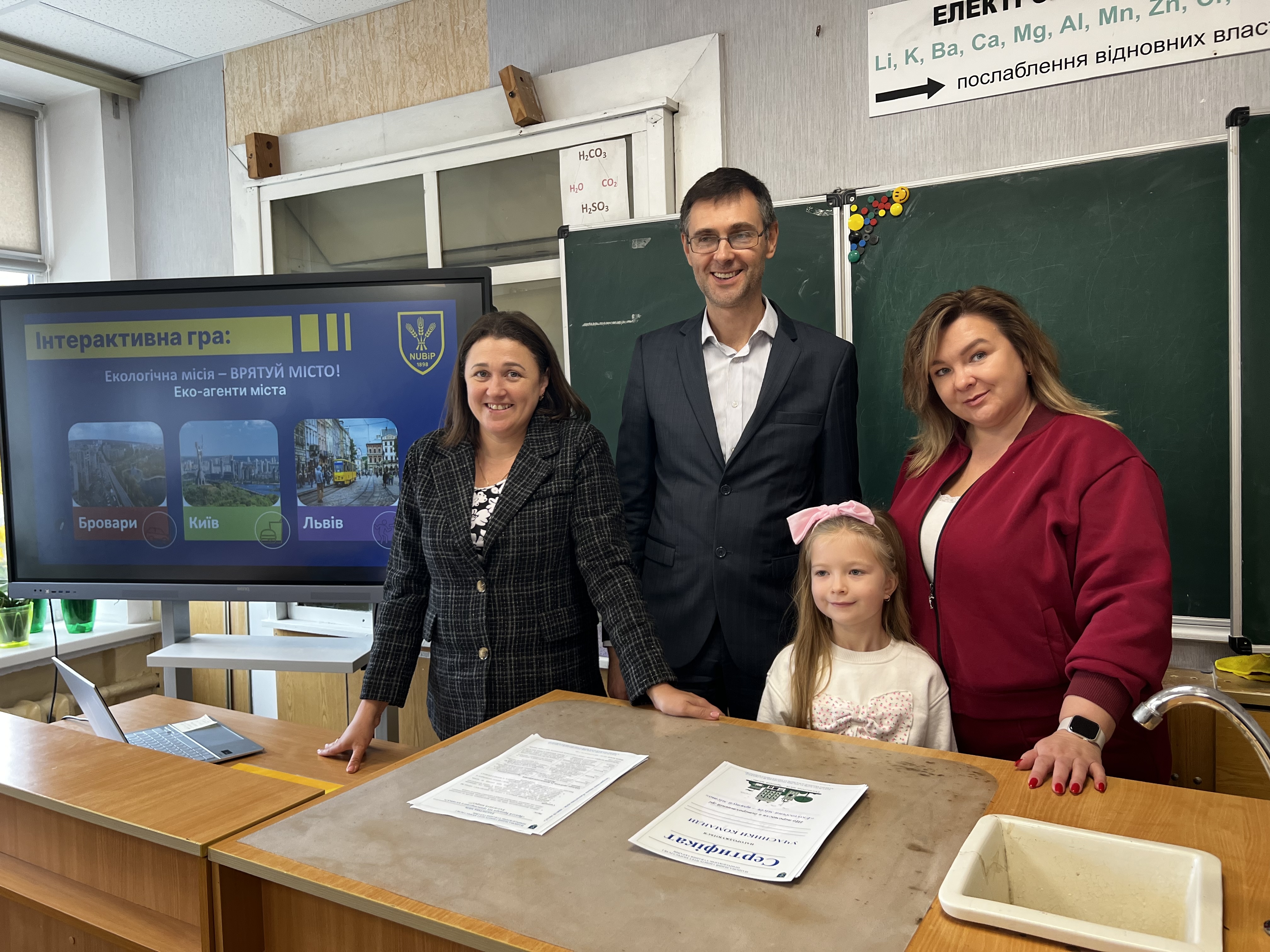 По завершенню доповіді на учнів чекала цікава творча інтерактивна гра під назвою «Еко-агент – Врятуй місто». Суть гри полягала у тому, що учасники (учні + вчителі школи) були поділені на три команди, які повинні були вибрати дві важливі екологічні проблематики для поданих у переліку міст Бровари, Київ та Львів та запропонувати цікаві креативні ідеї щодо їх вирішення. Викладачі подбали за відповідний роздатковий матеріал, а за 20 хвилин часу учні мали представити прийняті ними рішення на постері, доповівши їх зміст. Оцінювала підготовлені проекти та їх захист незалежний експерт Алла СТАТІВКА, яка є головою батьківського комітету школи.