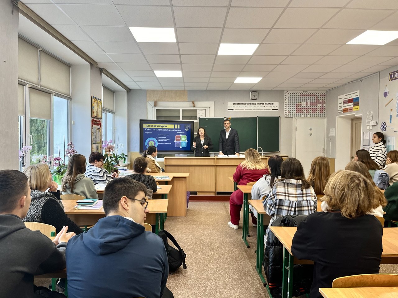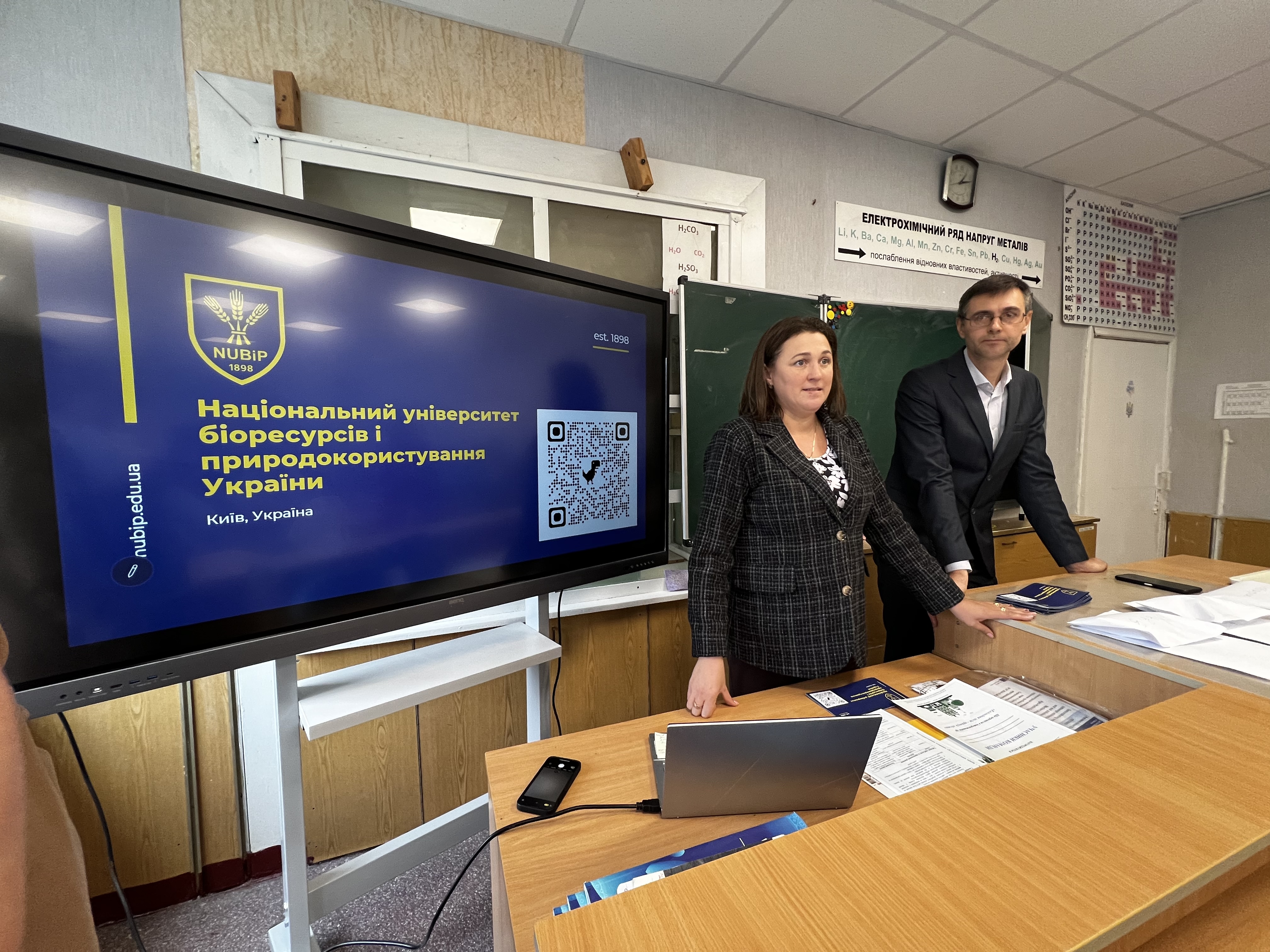 10 жовтня 2025 року викладачами кафедри екології агросфери та екологічного контролю, доцентами Вітою СТРОКАЛЬ та Євгенієм БЕРЕЖНЯКОМ, сумісно із магістрами спеціальності Е2 «Екологія» освітньо-професійної програми «Екологія та охорона навколишнього середовища» Владою БРОВЧЕНКО і Валентиною САМОЙЛЕНКО було здійснено візит до спеціалізованого інклюзивного Броварського ліцею №6 з метою проведення профорієнтаційної роботи. Слід додати, що практично місяць тому із даною школою було підписано договір про співпрацю. На порозі навчального закладу нас люб’язно зустріла директор ліцею, Людмила Миколаївна ПРИДЕЛЮК, яка представила вчителів, що братимуть участь у заході. Далі на нас чекав дружній обід і класна кімната із учнями 10-их і 11-их класів, яких радо запросили для ознайомлення із необхідною інформацією про НУБіП України та факультет захисту рослин, біотехнологій та екології.