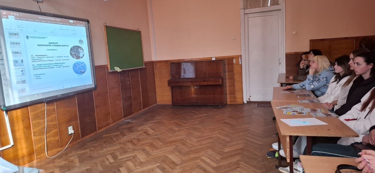 У межах цієї роботи було проведено зустріч доцента кафедри прикладної біології, розведення та генетики тварин Наталії СВИРИДЕНКО з учнями Переяславського академічного ліцею ім. Івана Мазепи, під час якої школярів ознайомили з освітніми можливостями факультету, сучасними напрямами підготовки фахівців у галузі тваринництва, кінології та водних біоресурсів, а також перспективами працевлаштування випускників.