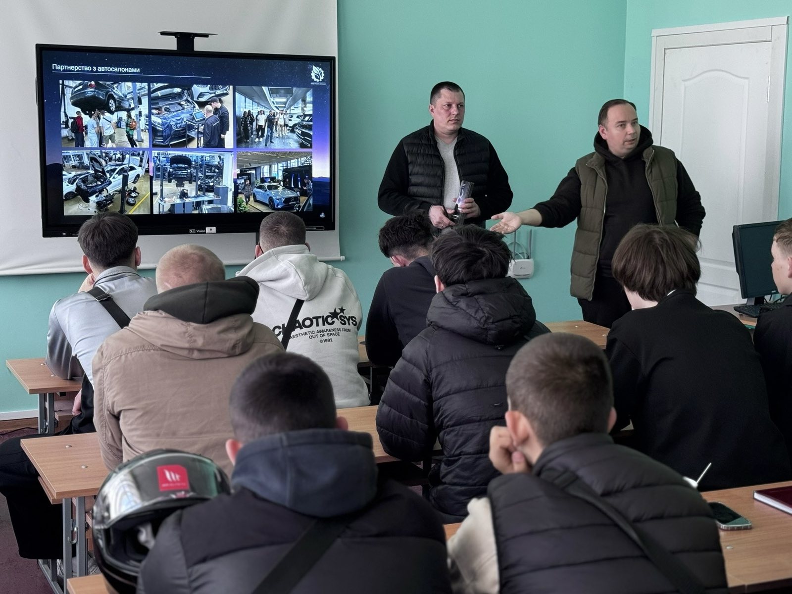 Завідувач кафедри тракторів і автомобілів Євген КАЛІНІН разом із доцентом Іваном КОЛЄСНІКОМ та асистентом Юліаною КОЛЄСНІК провели профорієнтаційний захід, який вийшов далеко за межі звичайної презентації. Це був відвертий діалог про можливості, виклики та реальні кроки до успішної кар’єри.