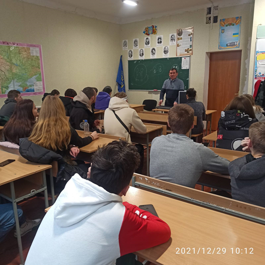 В завершальний місяць року, використовуючи послаблення карантинних обмежень, викладач кафедри охорони праці та біотехнічних систем у тваринництві Олександр Єременко провів ряд зустрічей з учнями випускних класів середніх навчальних закладів міста Васильків.