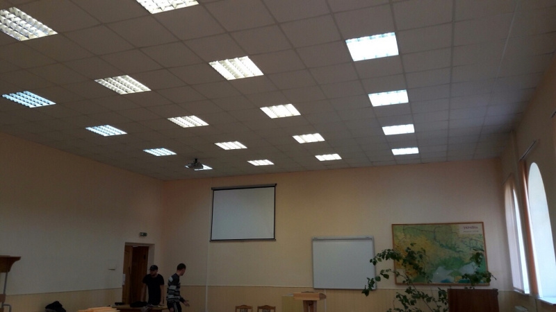 Такі роботи було проведено днями. Виконати їх стало можливим за фінансової підтримки Ради роботодавців факультету землевпорядкування та за технічної допомоги фахівців ННІ енергетики, автоматики і енергозбереження. Загалом було проведено заміну 96 люмінесцентних ламп в аудиторії 126 навчального корпусу №6. Тепер ця аудиторія оснащена не лише мультимедійним проектором та інтерактивною дошкою, а й економним освітленням.