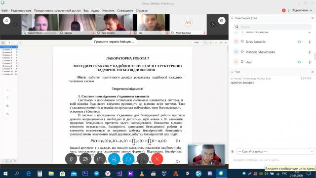 З використанням системи Webew було обговорені нюанси теоретичної частини і розглянутий приклад.