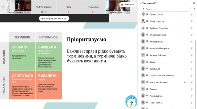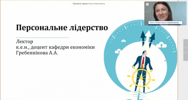 20 квітня 2021 р. на 4 парі відбулася відкрита онлайн лекція к.е.н., доцента кафедри економіки Гребеннікової Альони Анатоліївни з дисципліни «Лідерство та управління кар’єрою» на тему «Персональне лідерство» для студентів 2 курсу скороченого терміну навчання та, бажаючих розвинути власні soft skills, студентів 4 курсу ОС «Бакалавр» спеціальності «Економіка».