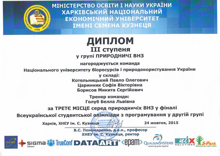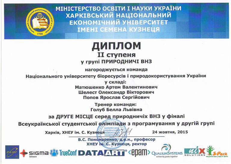 Як уже повідомлялося раніше, у вересні 2015 р. на базі НУБіП України було проведено другий етап Всеукраїнської олімпіади з програмування серед команд Київського регіону.