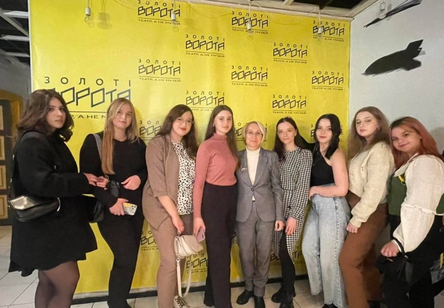 В останній день очного навчання третьокурсників, студенти групи ПС-21001 б гуманітарно-педагогічного факультету НУБіП України відвідали Київський академічний театр «Золоті ворота», відомий у столиці своїми новаторськими виставами. Цей камерний театр у своїх постановках порушує гострі питання, бере активну участь у культурному супротиві російській агресії. Психологи-третьокурсники переглядали виставу «Тест» (режисерка Т. Трунова).