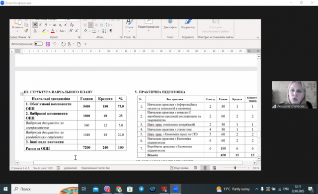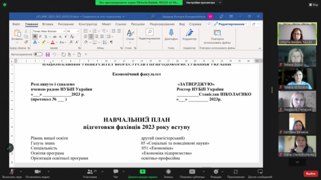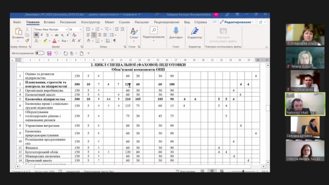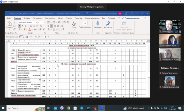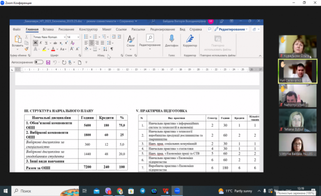 22 березня 2023 року на кафедрі економіки в онлайн-форматі на платформі Zoom відбулося публічне обговорення проектів освітніх програм першого рівня вищої освіти (бакалавр) «Економіка підприємства», другого рівня (магістр) «Економіка підприємства» та третього (освітньо-наукового) рівня вищої освіти «Економіка підприємств та галузей національного господарства».