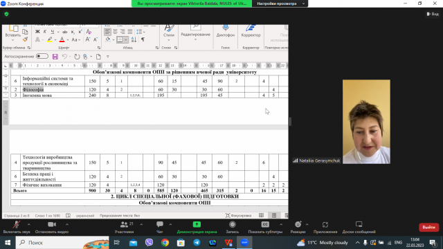 На завершення зустрічі, завідувачка кафедри економіки, гарант освітньої програми "Економіка підприємств та галузей національного господарства" ОНС ДОКТОР ФІЛОСОФІЇ (PHD), д.е.н., професор Байдала Вікторія Володимирівна поділилась з присутніми досвідом, який отримав колектив, у результаті проходження акредитації ОНП, і представила оновлену ОНП та навчальний план.