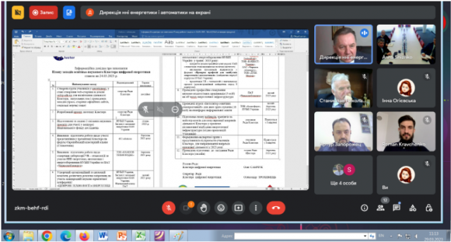 Учасники Кластера домовились про подальшу взаємодію для підготовки проєктних пропозицій для грантової підтримки дослідно-конструкторської, освітньої, науково-технічної та інноваційної діяльності для ринку енергетичних послуг, підготовки фахівців для потреб ринку праці.