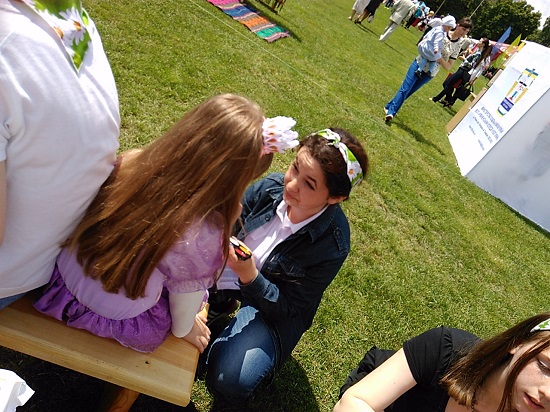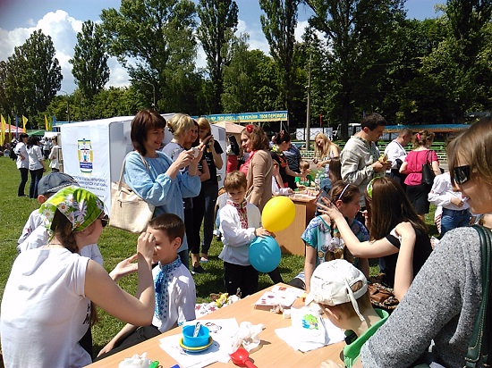 виготовляти вироби з піску, брати участь у дійстві створення ляльки-мотанки, мудрувати над створенням браслетів, сережок з тільки їм властивою гамою кольорів тощо. Кожна дитина та її мамуся могли скористатися аквагримом. Ці неймовірно гарнюсінькі дитячі личка ходили на нашому стадіоні, вболіваючи за мам, татків і дідусів, що змагалися між собою.