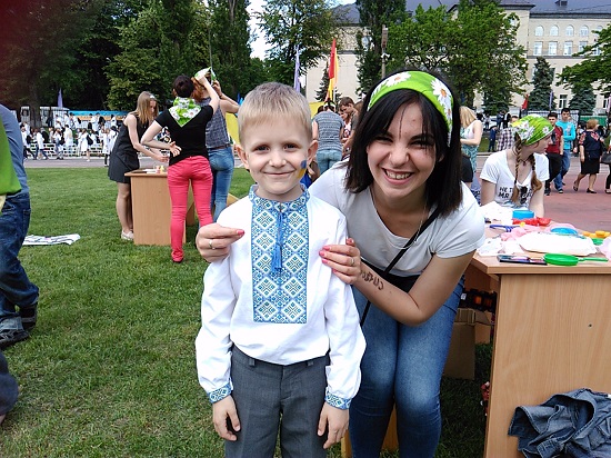 Cонечко і тепло кінця травня не завадили обрати майданчиком творчих занять місце на стадіоні й аж ніяк не знизили бажання студентів першого, другого і четвертого курсів навчити дітей (дошкільників, молодших колярів і підлітків) декорувати розмальовки і підготовляти наклейки,