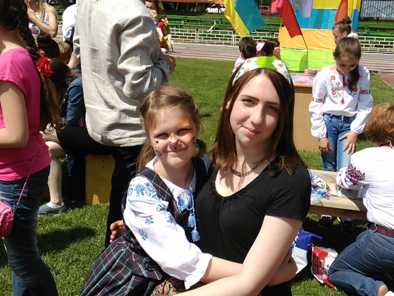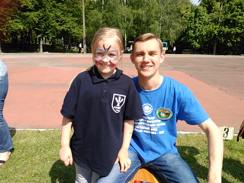 Cонечко і тепло кінця травня не завадили обрати майданчиком творчих занять місце на стадіоні й аж ніяк не знизили бажання студентів першого, другого і четвертого курсів навчити дітей (дошкільників, молодших колярів і підлітків) декорувати розмальовки і підготовляти наклейки,