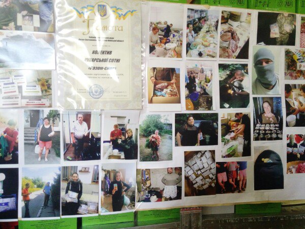 Активна волонтерка Надія Тітаренко у районному будинку культури організувала виставку продукції, яку виготовляє «Кухарська Сотня»: на застелених столах білими скатертинами та вишитими власними руками рушниками розкладені борщові та супові набори, пакетики смаколиків, узварові та чайові набори, різні солодощі (цукати з гарбуза і цитрусових, печиво), подушки, балаклави, шапки, килимки для сидіння, в’язані шкарпетки… Волонтерська робота надихає на поезію. Надія Тітаренко присвятила вірші бійцям АТО та волонтерам. Дякуємо Вам, дорога Надіє Миколаївно, за борщі, супи, виставки і поезію!