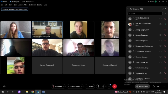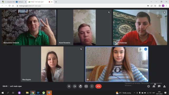 Не зважаючи на воєнний стан і діючі обмеження, викладачі та студенти працюють відповідально та злагоджено. Заняття проводяться з використанням комунікаційних платформ Zoom, Google Meet, Cisco Webex Meeteng, згідно встановленого розкладу. Також студенти виконують завдання на електронній платформі університету Elearn. Звичайно, через збої в енергопостачанні, «падіння» інтернет-сигналу та повітряні тривоги, усі учасники освітнього процесу, інколи, мають проблеми з підключенням до відеозанять. Але, хочу наголосити – освітній процес, у нашій групі не припиняється.