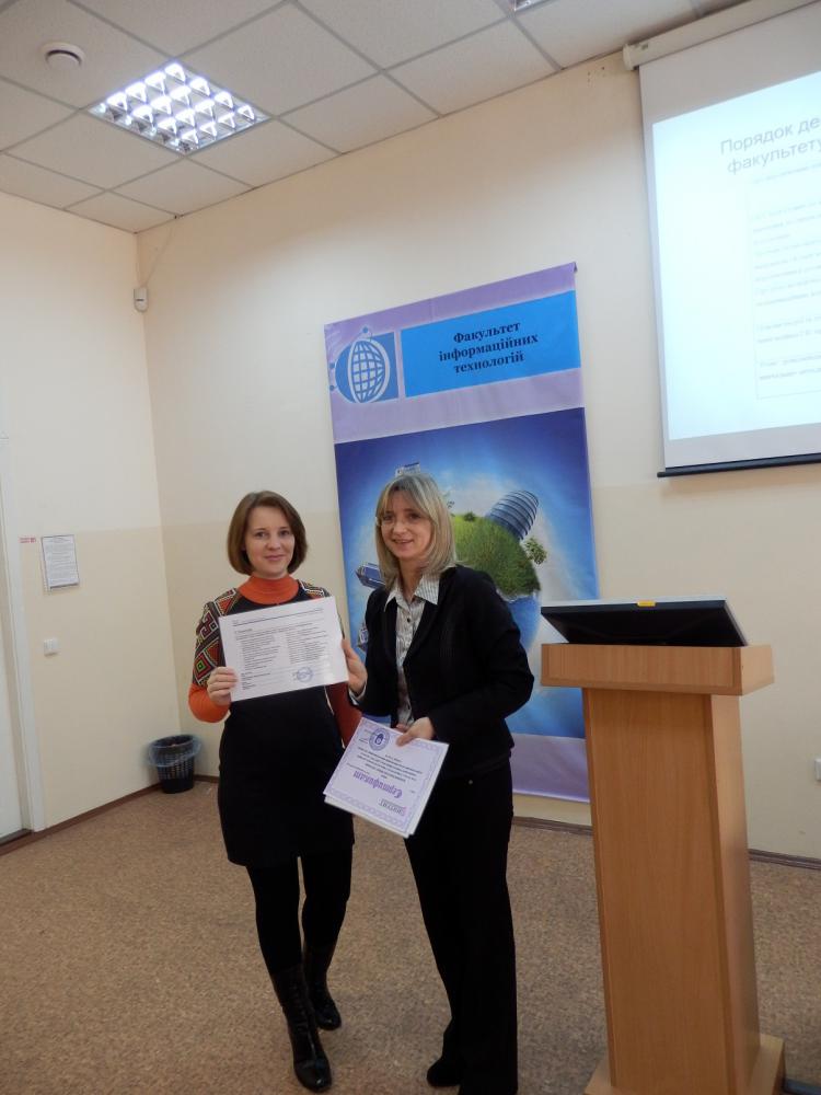 успішно пройшла курс Мережевої академії Cisco та отримала відповідний сертифікат на засіданні Вченої ради факультету.