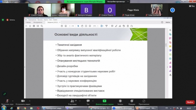 Організаційне онлайн-засідання студентського наукового гуртка «Природа та Мистецтво», який нещодавно відновив свою діяльність, відбулось 15 лютого 2023 року.