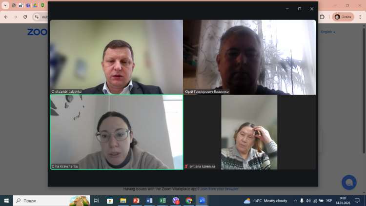 14 січня 2026 року відбулася традиційна онлайн зустріч учасників проекту KIARA EIT Food у складі проректора з науково-педагогічної роботи та міжнародної діяльності, доктора економічних наук Олександра ЛАБЕНКА; завідувача кафедри рослинництва, професора Світлани КАЛЕНЬСЬКОЇ; заступника декана з міжнародної діяльності агробіологічного факультету, доцента кафедри аналітичної і біонеорганічної хімії та якості води Ольги КРАВЧЕНКО та доцента кафедри економічної теорії Юрія ВЛАСЕНКА.