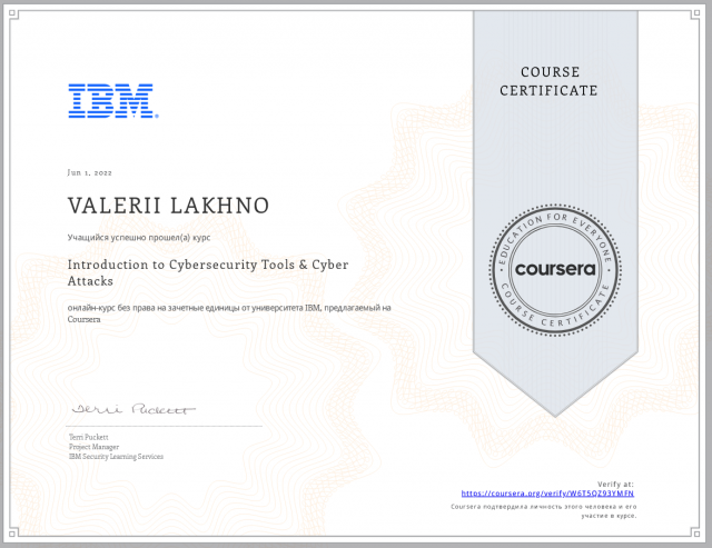 Викладачі кафедри комп’ютерних систем, мереж та кібербезпеки почали планове підвищення кваліфікації з напрямів кібербезпека та мережеві технології завдяки курсам «Fundamentals of Network Communication» та «Cybersecurity for Everyone» та «Introduction to Cybersecurity Tools & Cyber Attacks, IBM». Вітаємо д.т.н., проф. Лахна В.А. з отриманням перших сертифікатів.