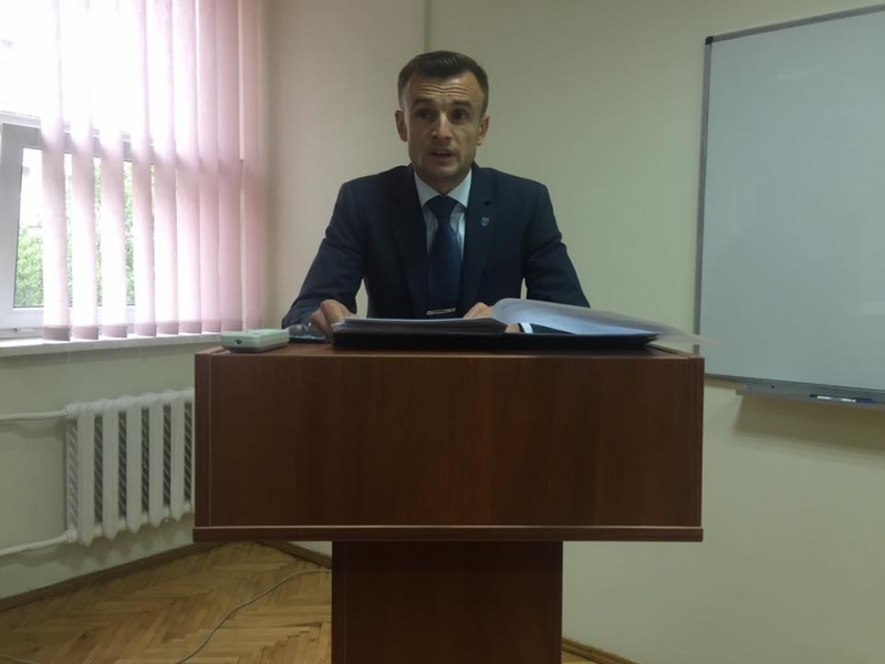 Декан факультету землевпорядкування Тарас Євсюков свою доповідь розпочав з невеликої екскурсії по відремонтованим аудиторіям, і, власне, саме засідання проходило у сучасному конференц-залі, яке обладнали випускники факультету Олександр Меншун, Анатолій Полтавець та Олег Цвях.